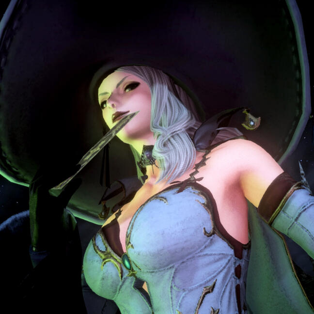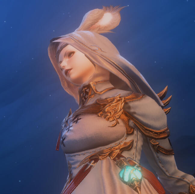 Found on the steps of St. Reymanaud's Cathedral in Ishgard, Ephria was taken in by the church. The convent sisters quickly realized that the needs of a Veena baby were quite different from those of a Hyur or Elezen. They were no stranger to longer lifespans, but Ephria would age incredibly slow compared to her peers. Being the only Viera in the convent, her childhood was one of recognizing how much she stood out to her peers. Many would gawk and stare and her, and whisper rumours behind her back. Still, she would find solace in the words she would study from Halone, and she would take her words of always fighting to heart.As she aged, Ephria would find herself conscripted to the Celestial Choir - a sect of the Ishgardian Military composed of nuns who wished to fight by their male counterparts. In training, she would hone her skills with a lance, finding herself excelling at the weapon. Equal parts both deadly and graceful, many would start to take notice of her in more than just her aptitude in training. Her work was noticed by a superior, who soon signed her off to have her own simple private quarters above the Cathedral in the attic. There, she would explore the labyrinth of the upper levels, finding nooks lost to time. Her voice would echo through the rafters, and be a comforting sound to those who would strain hard enough to listen. However, her training would take a toll on her, and many of the men in the military would turn to her to seek physical release. What wasn't explained to her that as part of the Celestial Choir, the men of the military had free use of the women of the Choir for carnal needs, and soon she would be sought out and used by them, filling her seen as a trophy.This would spiral the poor Veena into depression, barely legal and barely her own person. She would scour the tomes and papers of former Choir and Military personnel alike. Finding nothing noting the abuse, she spiraled into a depression, unsure of what to do or who to speak to. She needed a release, and soon took her daily devotions to masochistic extremes, inflicting pain on herself by whipping herself and keeping a band of thorns on her thigh. Her increasing uncanny ability to always wear a smile would help hide her pain, her sorrow, and her will to fight back. It had not dawned on her that she was failed by the words of faith that should have protected her.Until one day, as she was making her way through the upper parts of the Vault, a man would approach her. As he would start groping and undressing her, a sudden icy spark ran up her spine. She had had enough. Her faith, after decades of devotion, of pain, of sorrow from the twisted doctrine the men of the Church would use against her, would be rewarded by Halone herself. In that moment, she reached for the man's blade, and in a swift motion, she would impale him on it. The entirety of the event would be hazy in her mind, but she knew that through her, Halone worked her justice through her daughters. Her hands would be guided by something more, and it would give her a purpose.Not long after, an Eorzean Lalafell would approach her. Kind eyes, big smile, and a shocking pink beret. She would ask for Ephria's help, a guide through the lands of Coerthas and beyond. Soon, she would be joined by a young Elezen with bright blue eyes, and so she gave them the protection of the Choir until they found their way to House Foretemps, where they got the blessing of the head of the household. Ephria would keep the band of adventurers company through the lands, enthusiastically talking about the history, the conflicts, and the want to help where she could.Nowadays, she can be found on patrol in the snowy plains of Coerthas, Dravania, the Sea of Clouds, The Churning Mists, and Azys Lla. She'll return to Ishgard often, and ensure her devotion to Halone is as strong as it was the day she was taken under Her wing. Her strides and decisive strikes to foes portray a fervor now tinged in frost. Though try as she might, her body and mind now crave connection. Thus, she's started to travel outside of Ishgardian lands more and more...
